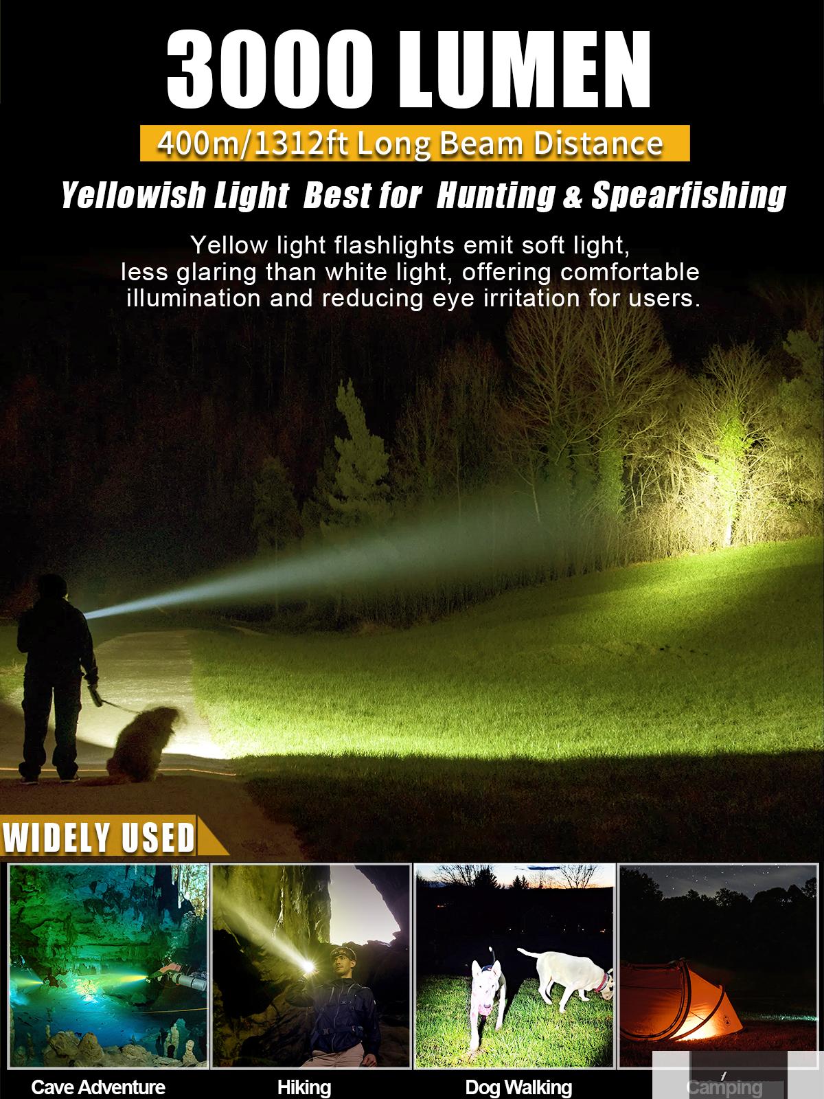 - ã€STRONGER PENETRATION】DF30Y Yellowish light dive light is perfect for use in murky water environments or in the presence of fog or water vapor. Compared with other visible light (such as white/blue light, etc.), Yellowish light has stronger penetration