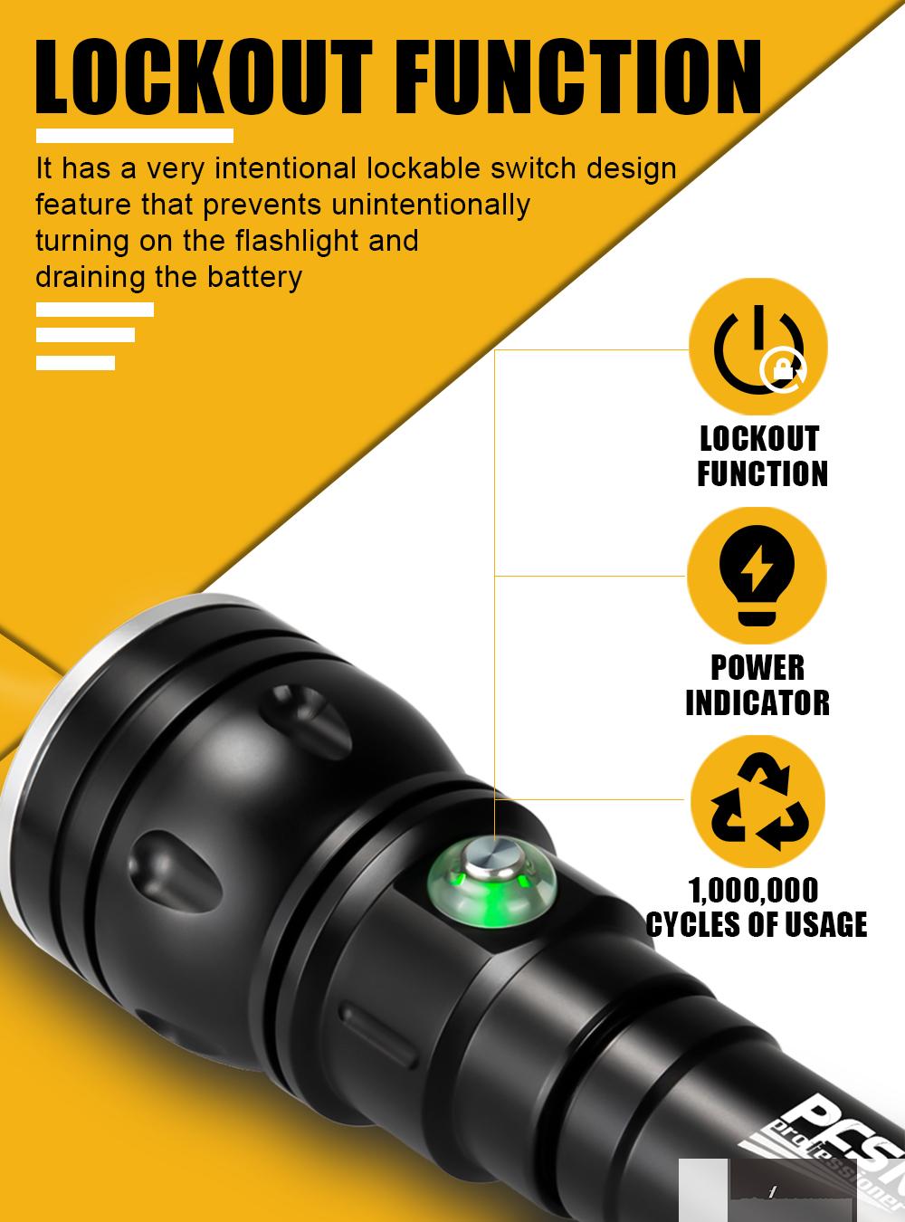 - ã€Power indicator】The scuba dive flashlight has a power indicator around the switch that clearly shows the remaining power in real time