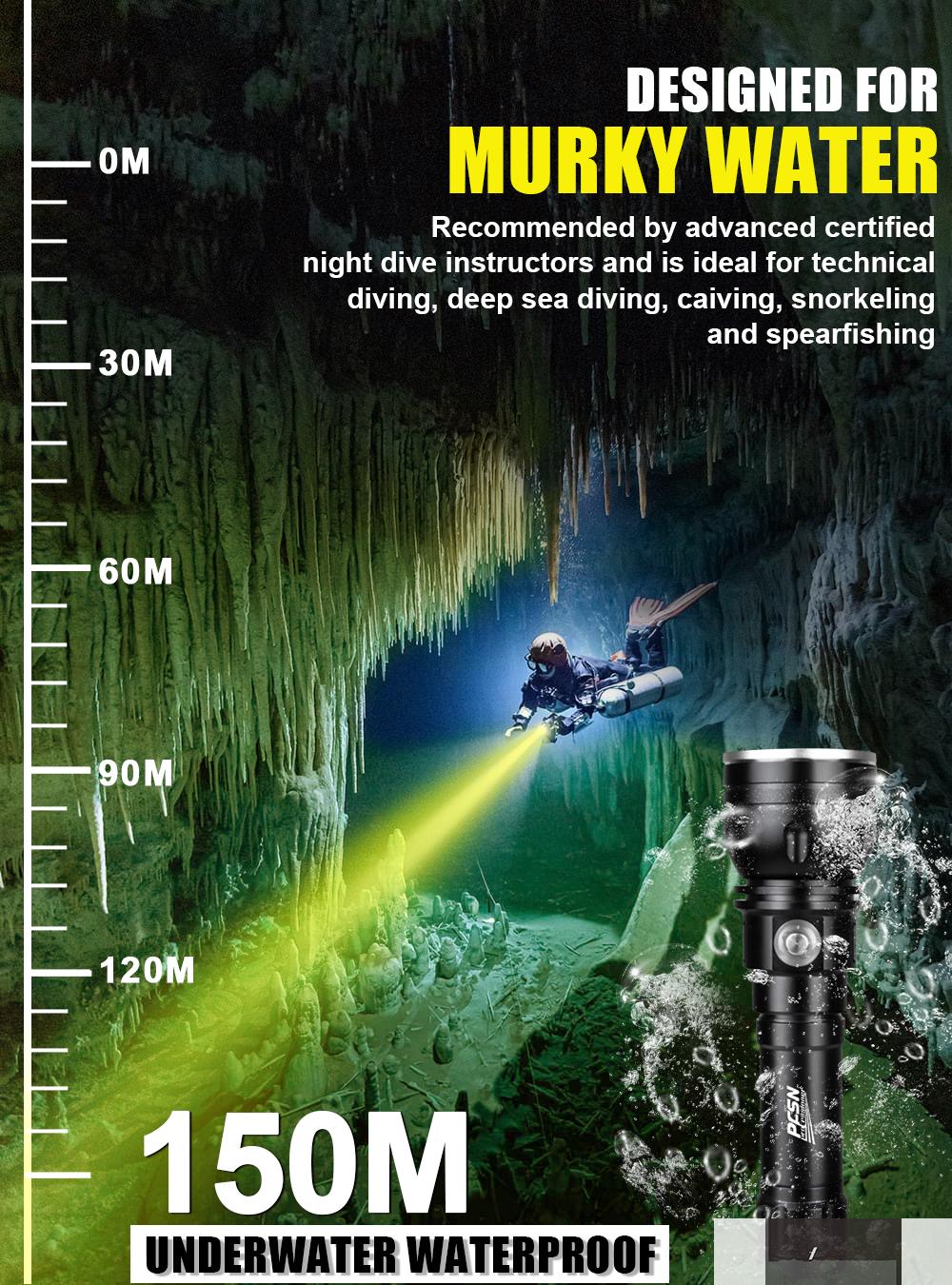 - ã€LAB-VERIFIED IP68 WATERPROOF RATING】Every DF30Y underwater flashlight you receive has been tested to 1.5Mpa water pressure and is waterproof up to 150 meters underwater, best for boating, deep diving, night diving, cavern diving and tech-diving